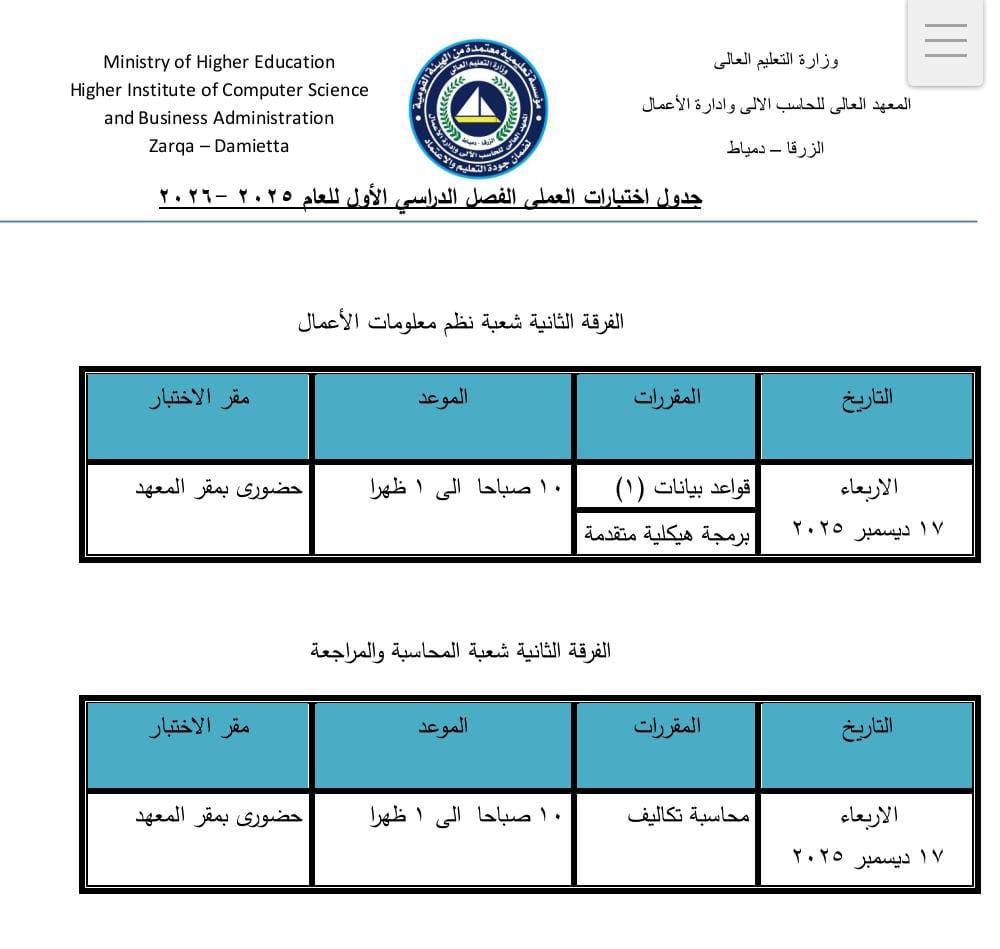 الفصل الدراسي الأول 2026/2025 / نظم معلومات الأعمال / الفرقة الثالثة